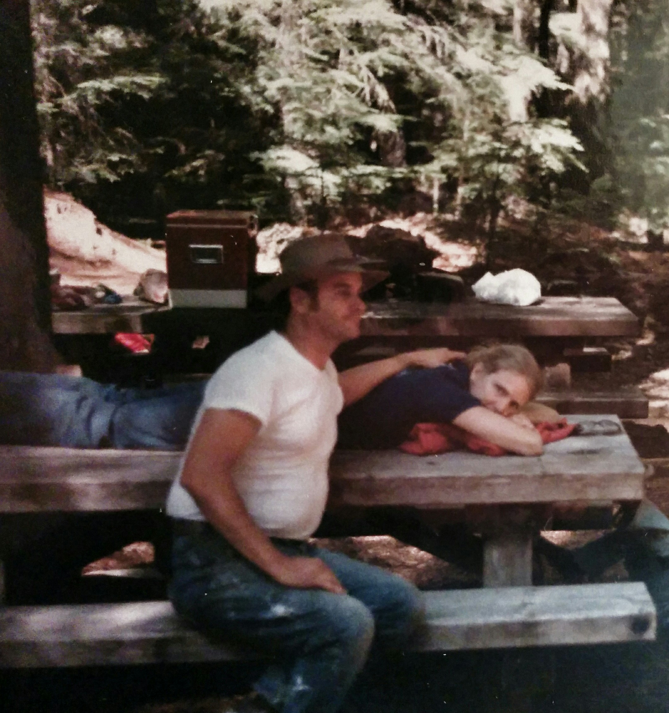 I began to feel bad for my dad sitting all alone in the dark in a horse trough every night. He was so happy with his invention that I felt I should make an effort to be excited about it too. So, one night I put on my black one piece bathing suit, grabbed a towel and some slippers and shuffled out to the tub where my daddy was already relaxing. He saw me coming and I could tell he was delighted. I liked to make my dad happy, even if it meant sitting in the front yard of our lopsided cabin in a giant metal tub of hot water with my crazy father over an open fire.